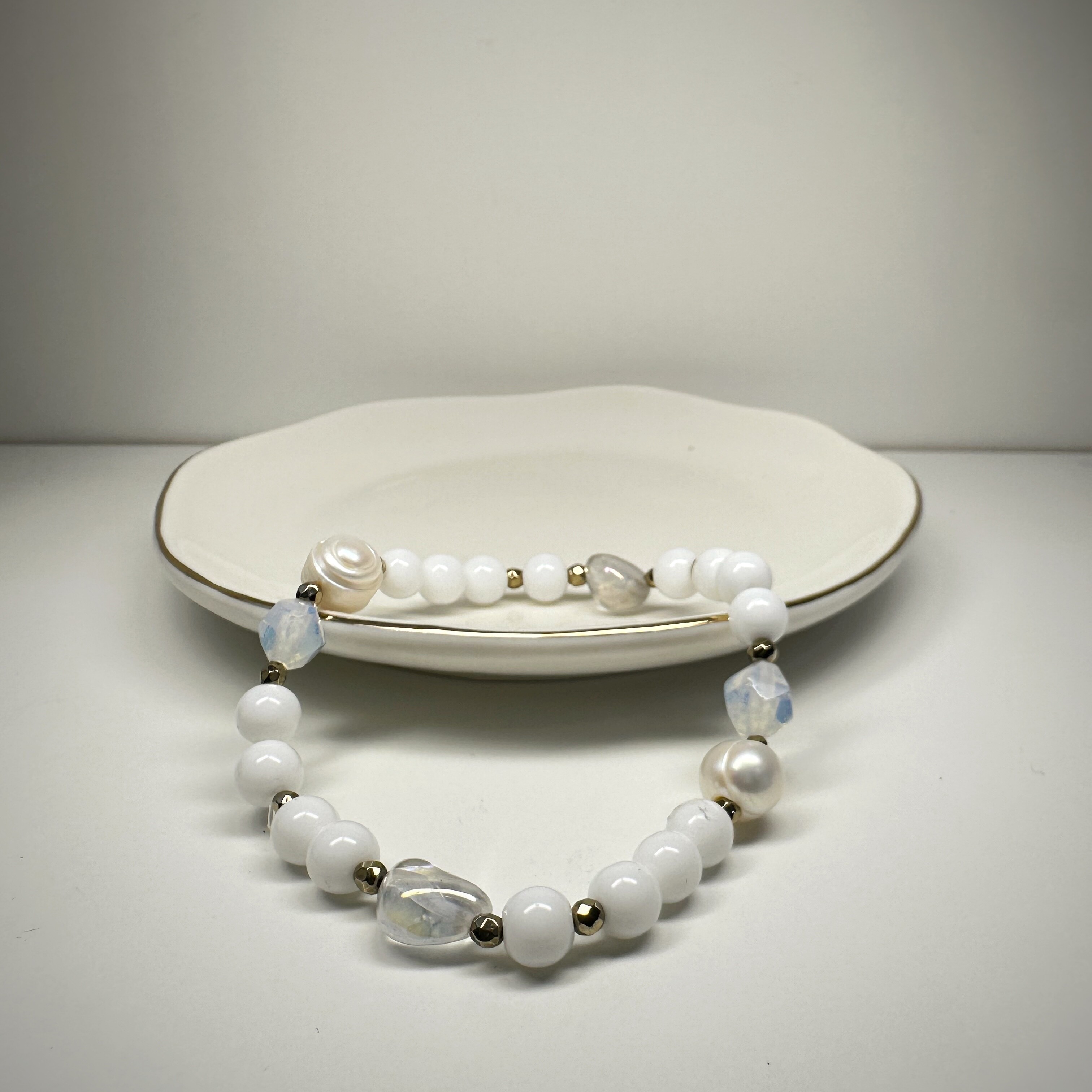 Każdy dzień zasługuje na czysty początek. Bransoletka Cisza Poranka przypomina o tym, że w prostocie tkwi siła. Biały jadeit koi emocje, kryształ górski rozjaśnia myśli, a agat chroni wewnętrzny spokój.