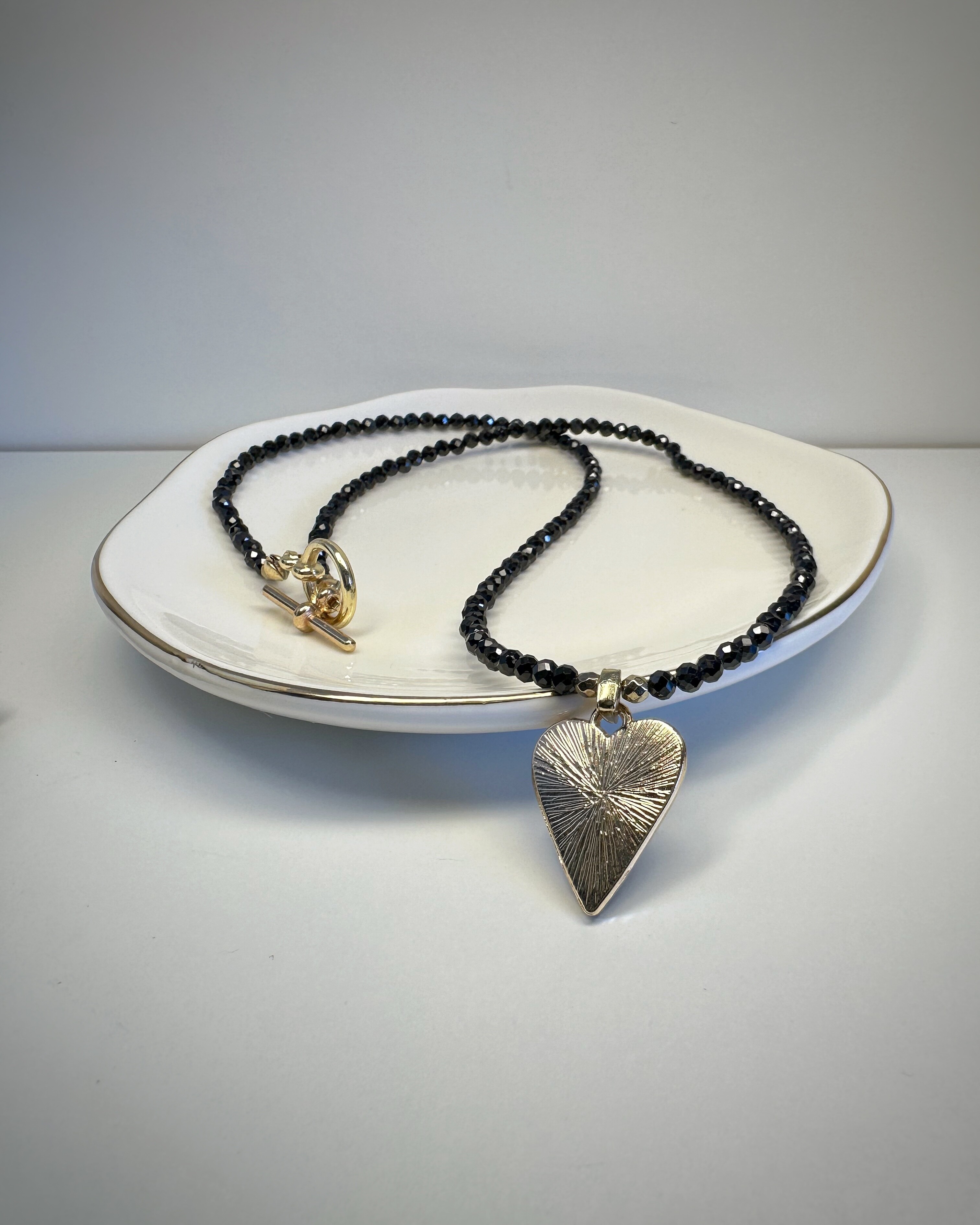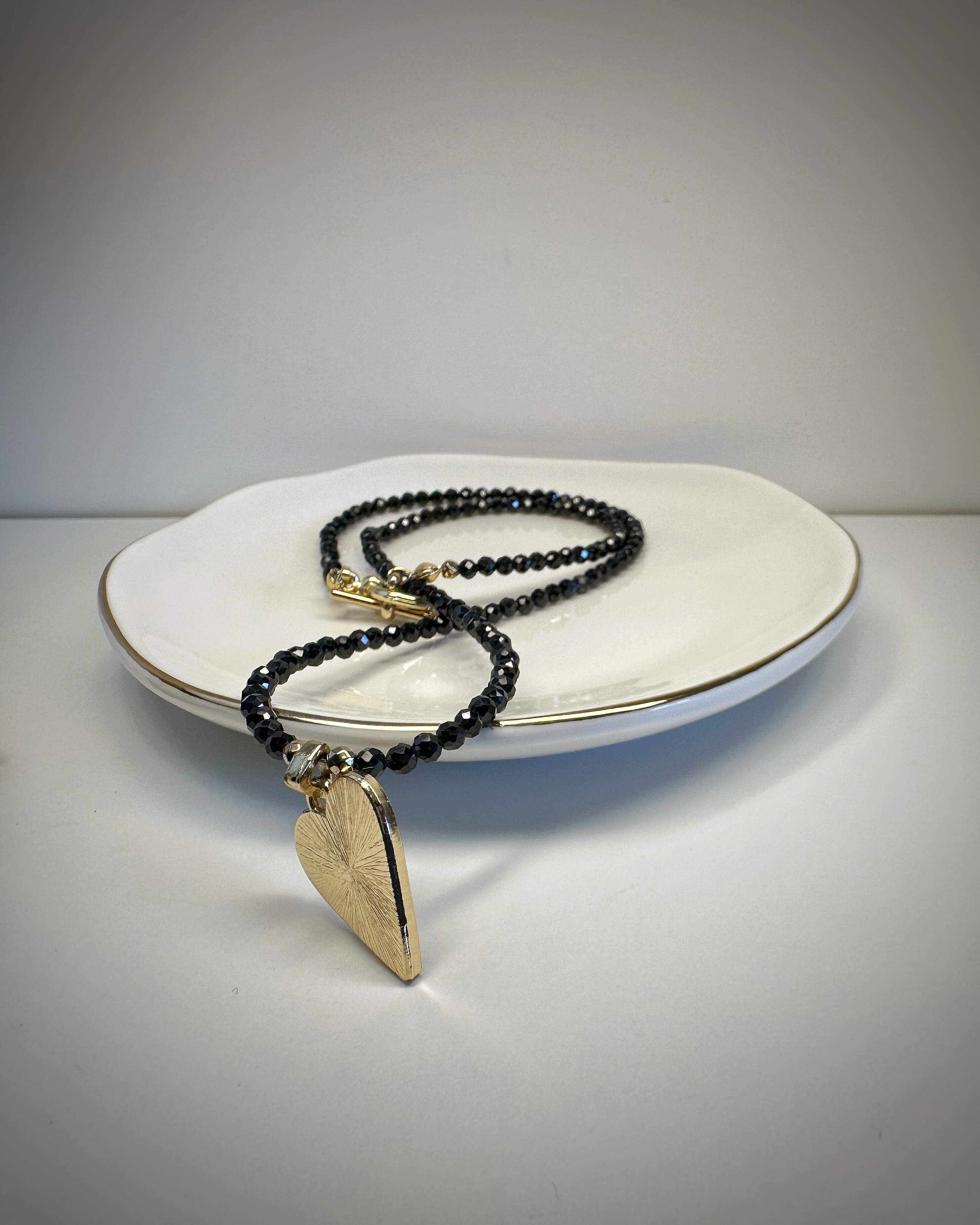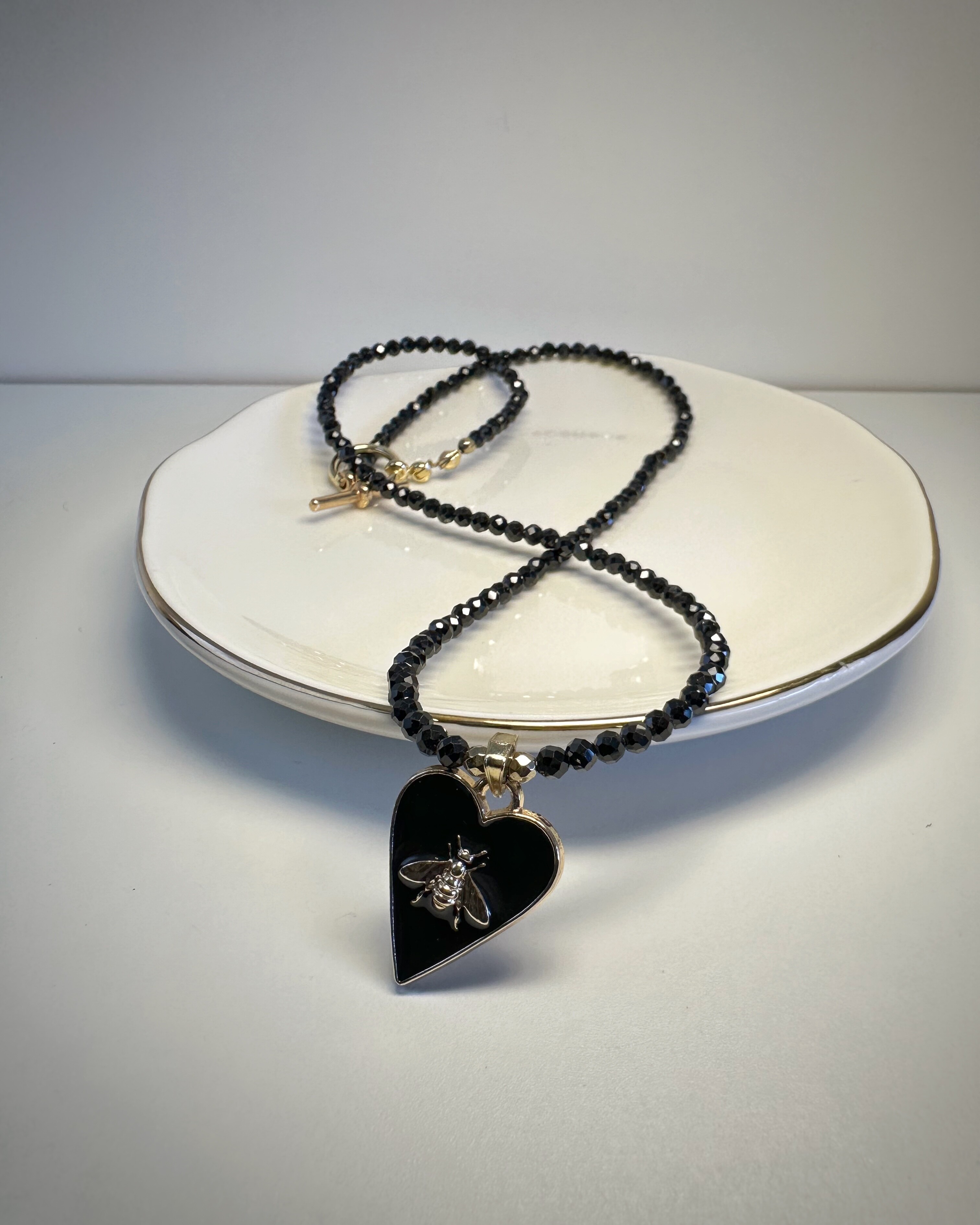 Ten naszyjnik to nowoczesna interpretacja klasyki. Czerń i złoto to połączenie, które nigdy nie wychodzi z mody. Lekko błyszczące kamienie pięknie układają się wokół szyi, a pszczoła – symbol pracowitości i odwagi – w sercu naszyjnika przypomina o wewnętrznej sile. Idealny do wieczorowych stylizacji, marynarki lub czarnej sukienki.