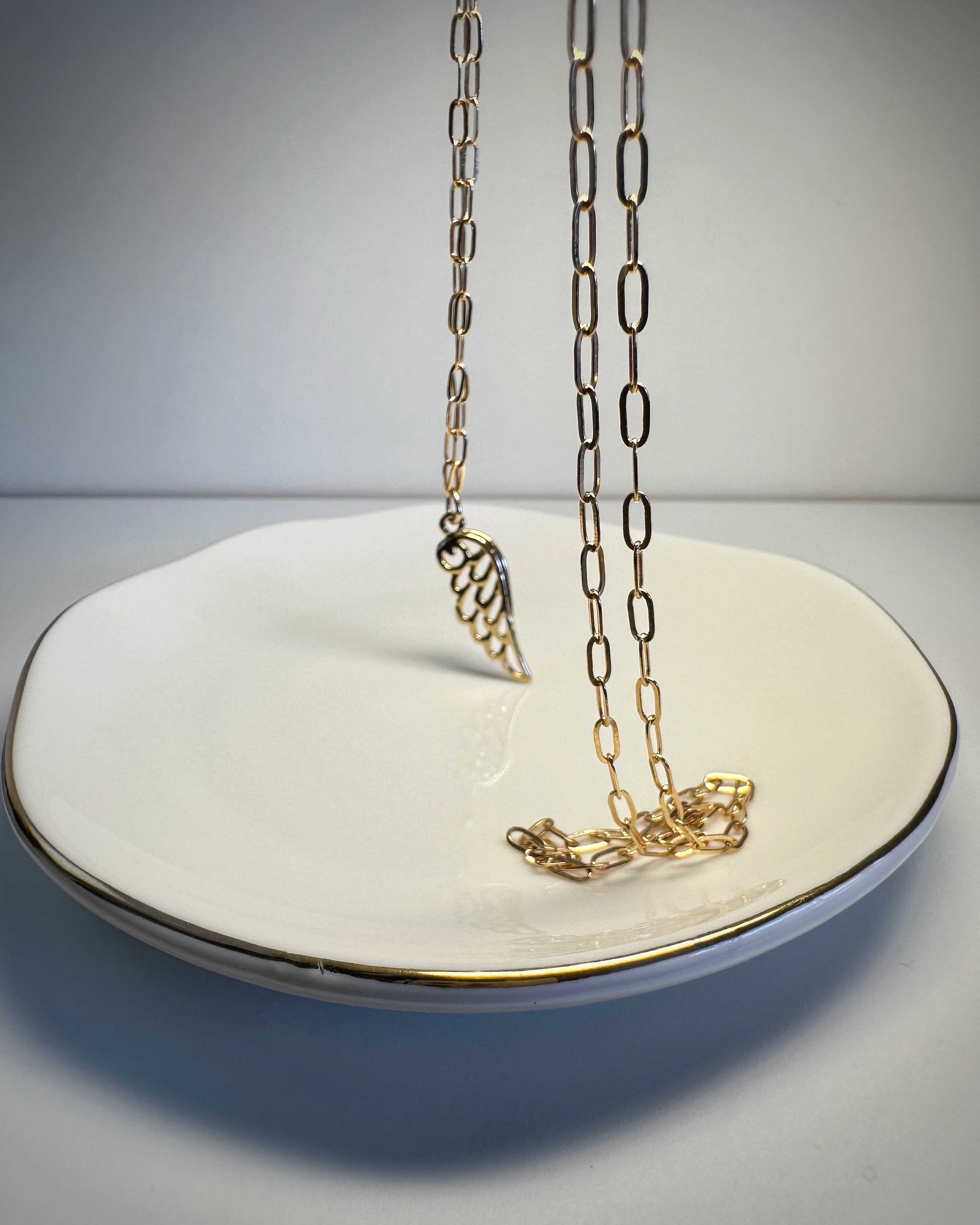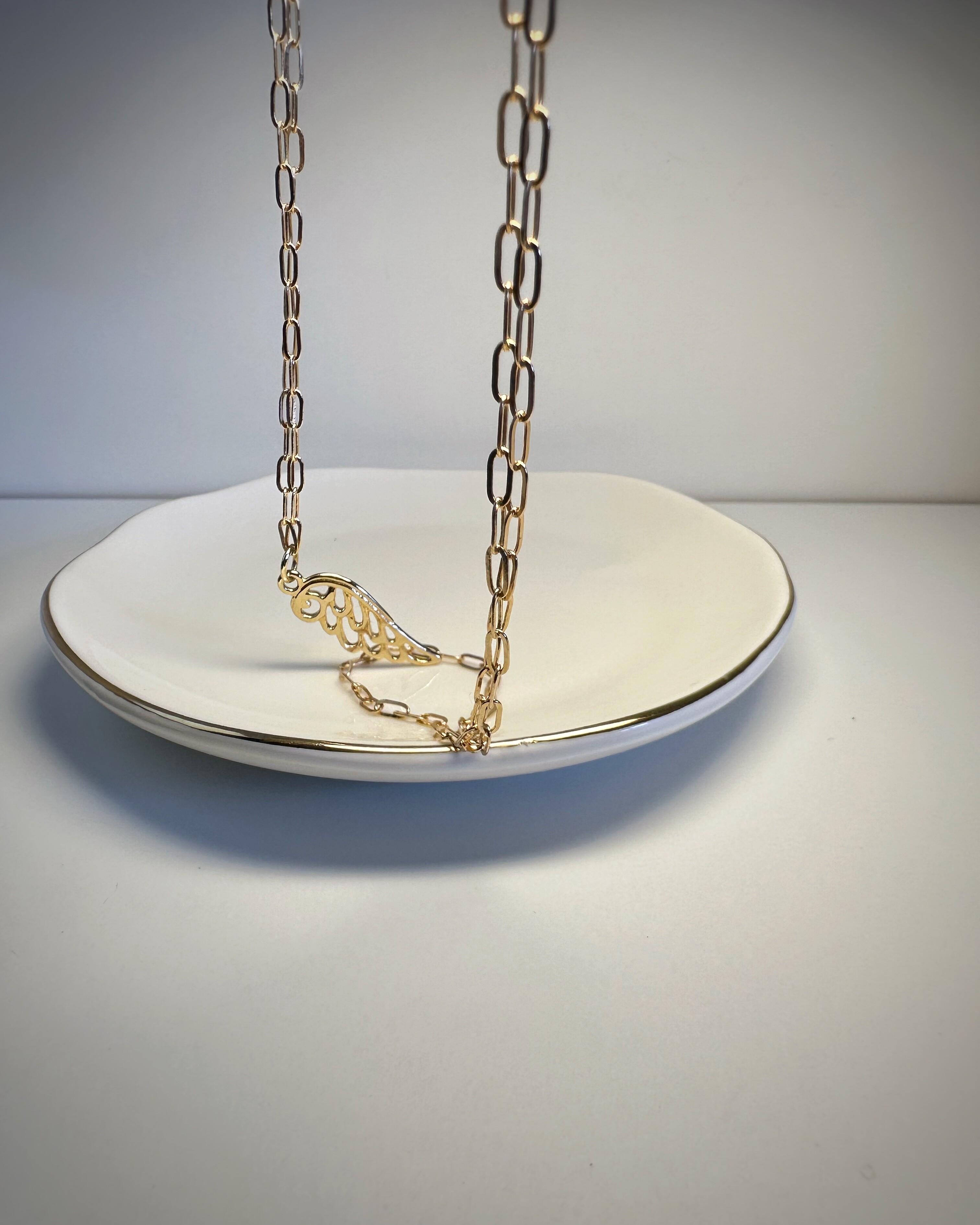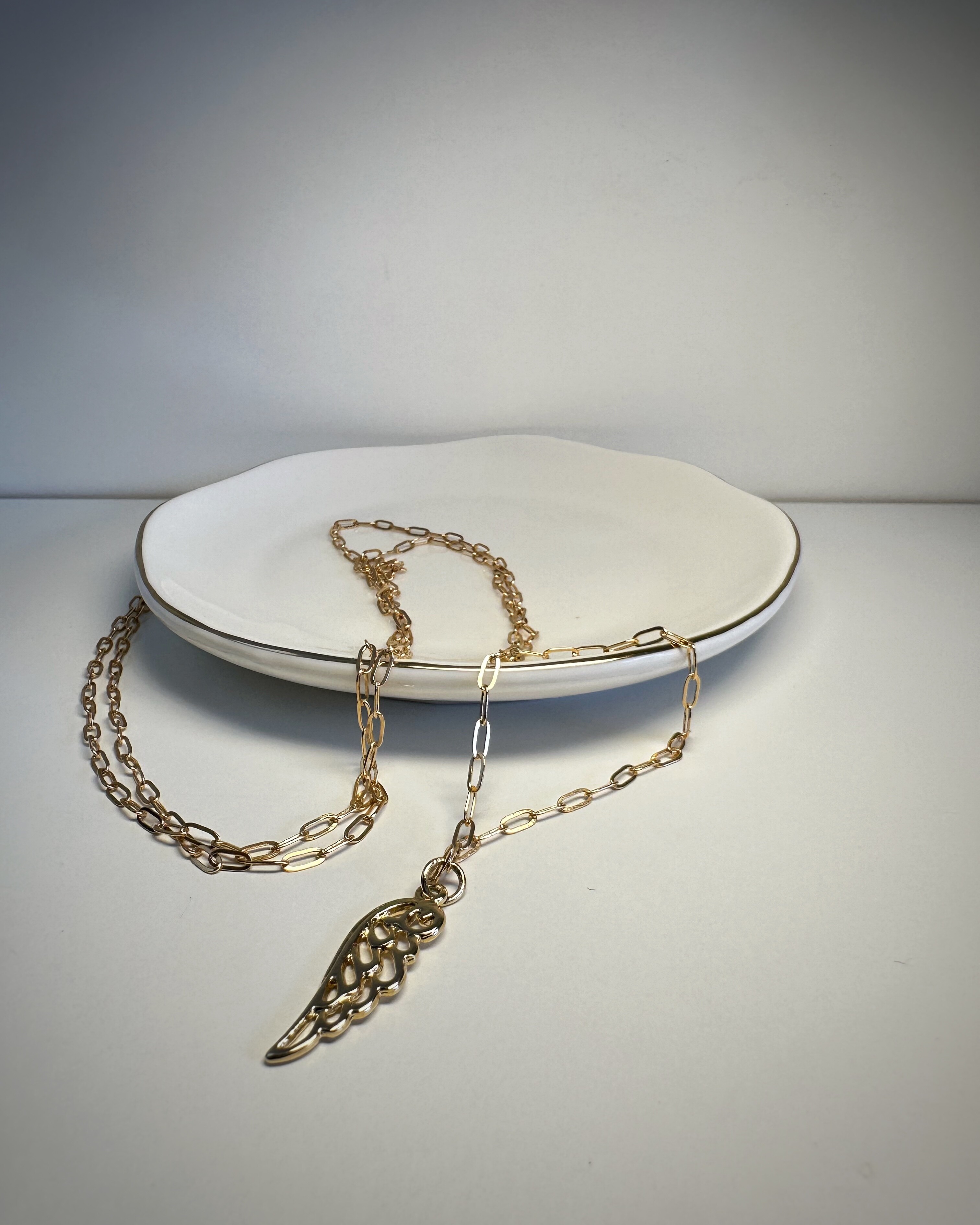 Złotolica to naszyjnik, który mówi: „Jestem tu. I błyszczę, jak chcę.”Duże, eleganckie ogniwa łańcucha ze stali chirurgicznej w ciepłym, złotym odcieniu przyciągają wzrok, ale nie krzyczą. W centrum całości – zawieszka w kształcie skrzydła – symbol wolności, lekkości, ale i odwagi. Idealny do T-shirtu, sukienki czy marynarki. W dzień i w noc.