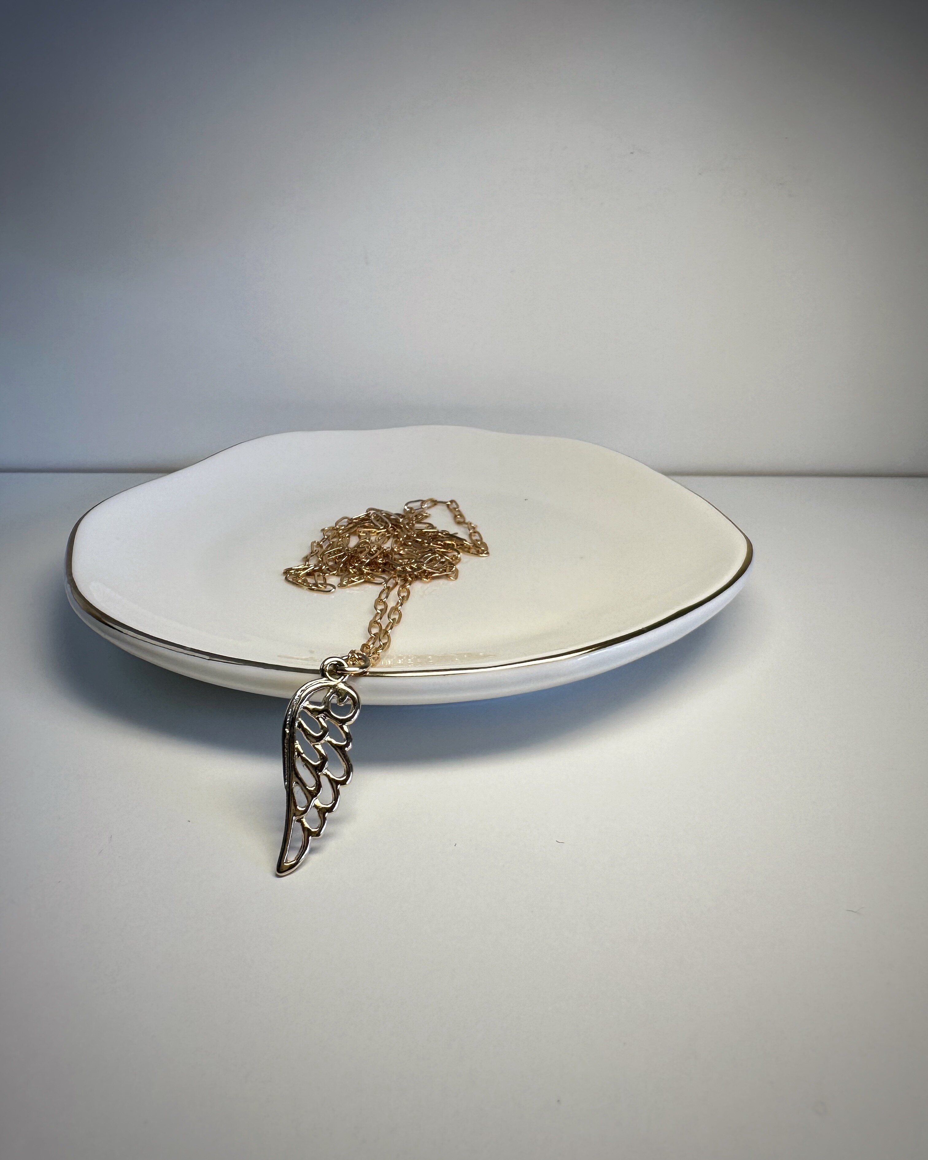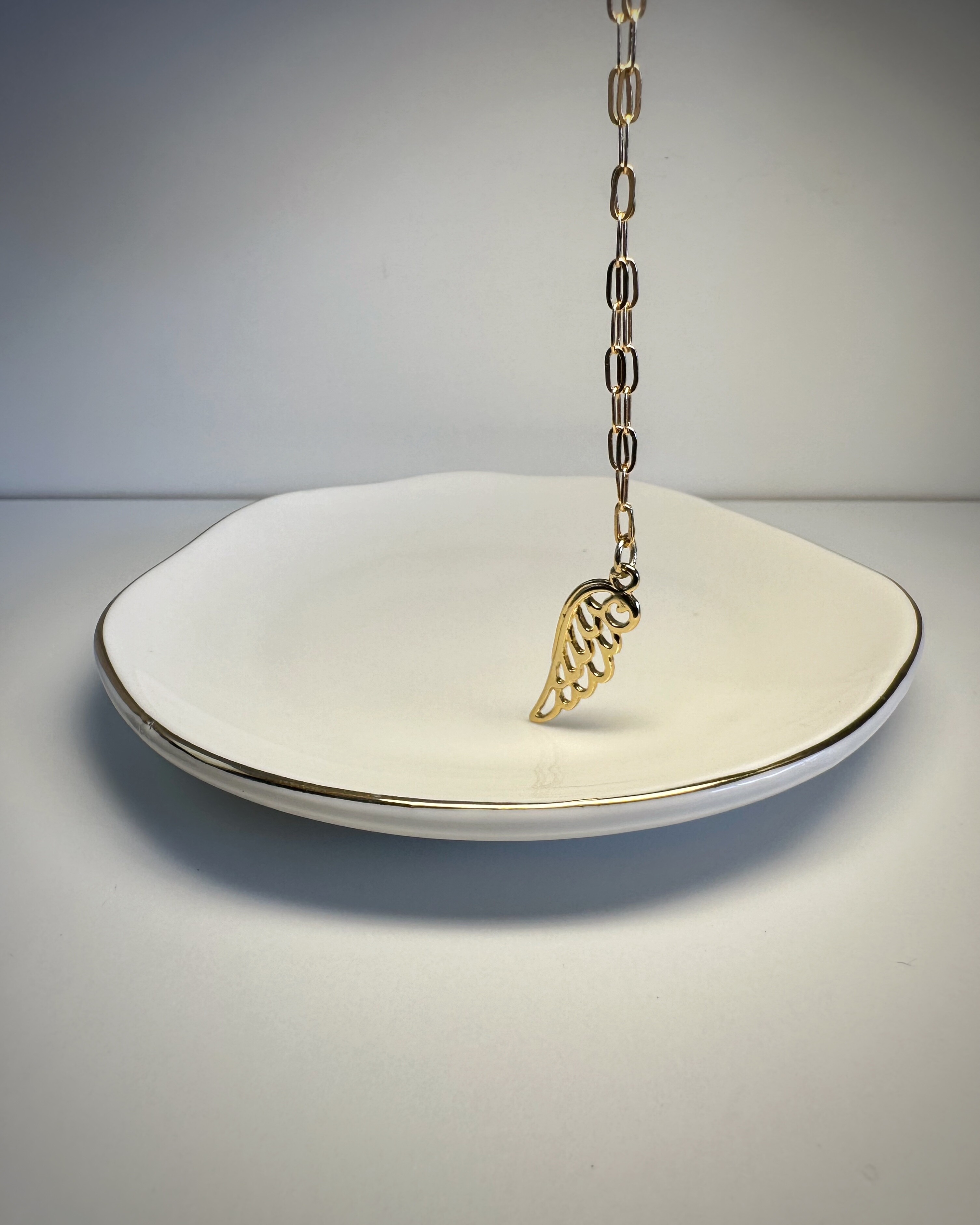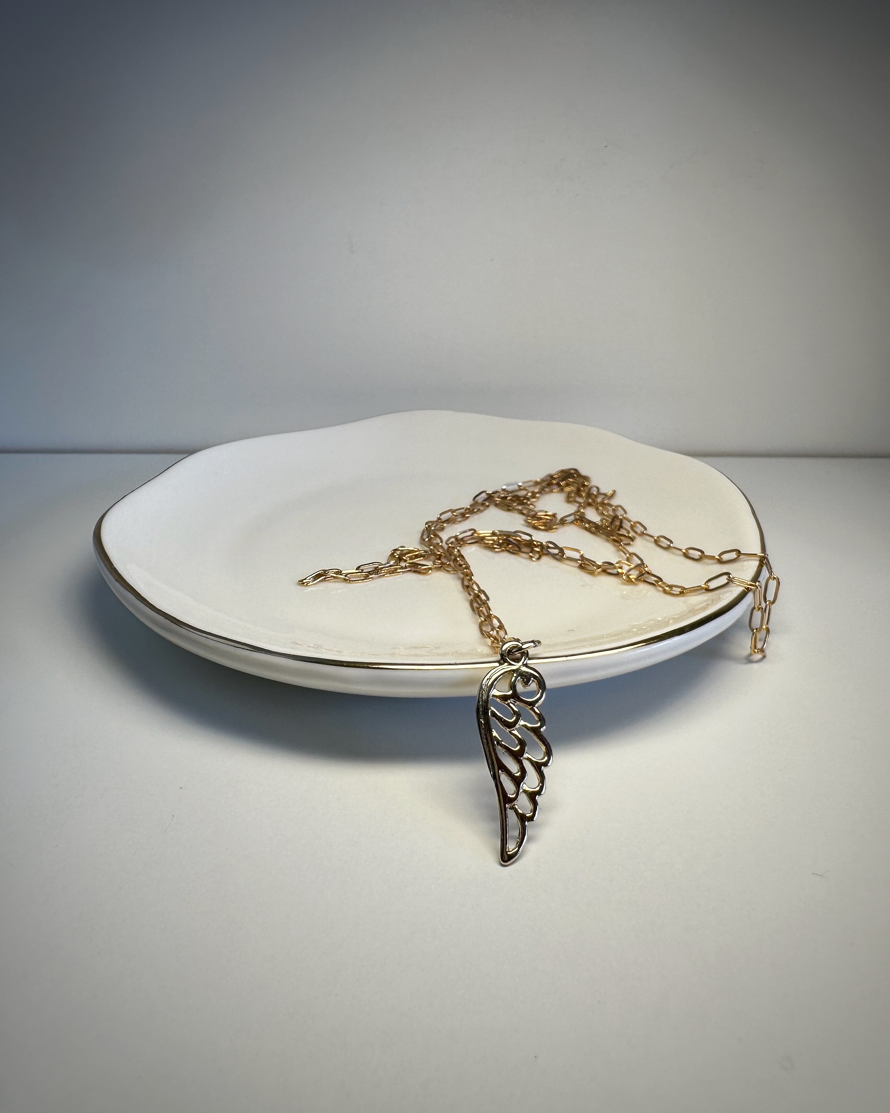 Złotolica to naszyjnik, który mówi: „Jestem tu. I błyszczę, jak chcę.”Duże, eleganckie ogniwa łańcucha ze stali chirurgicznej w ciepłym, złotym odcieniu przyciągają wzrok, ale nie krzyczą. W centrum całości – zawieszka w kształcie skrzydła – symbol wolności, lekkości, ale i odwagi. Idealny do T-shirtu, sukienki czy marynarki. W dzień i w noc.