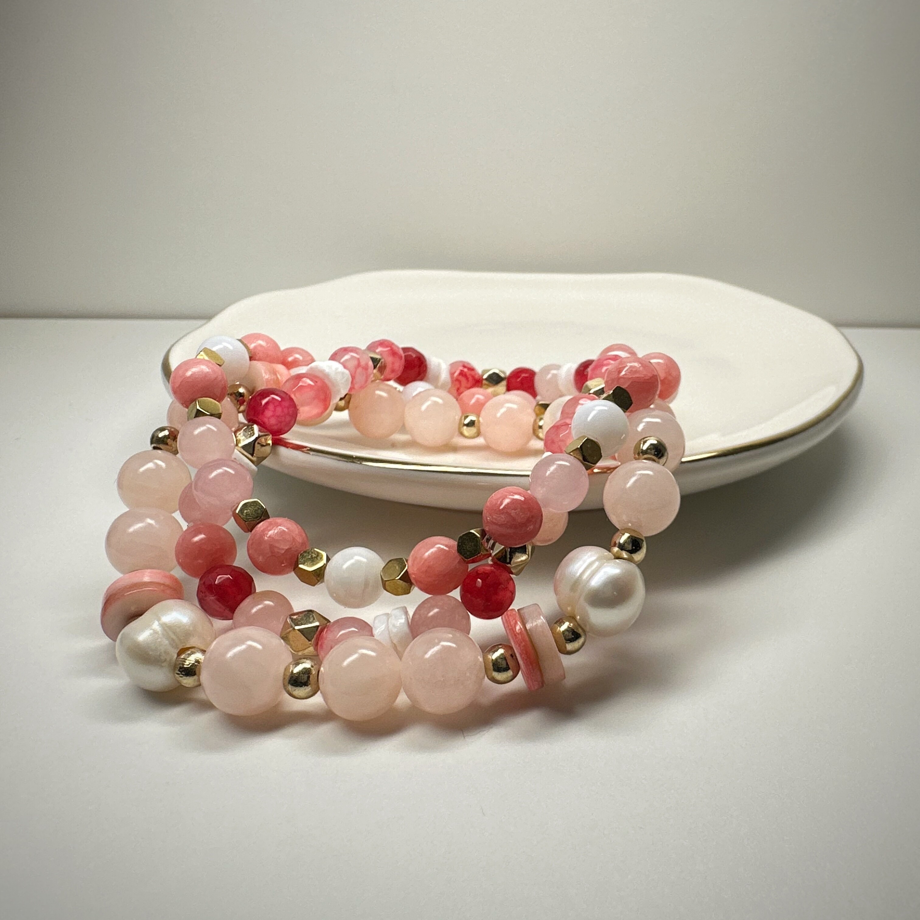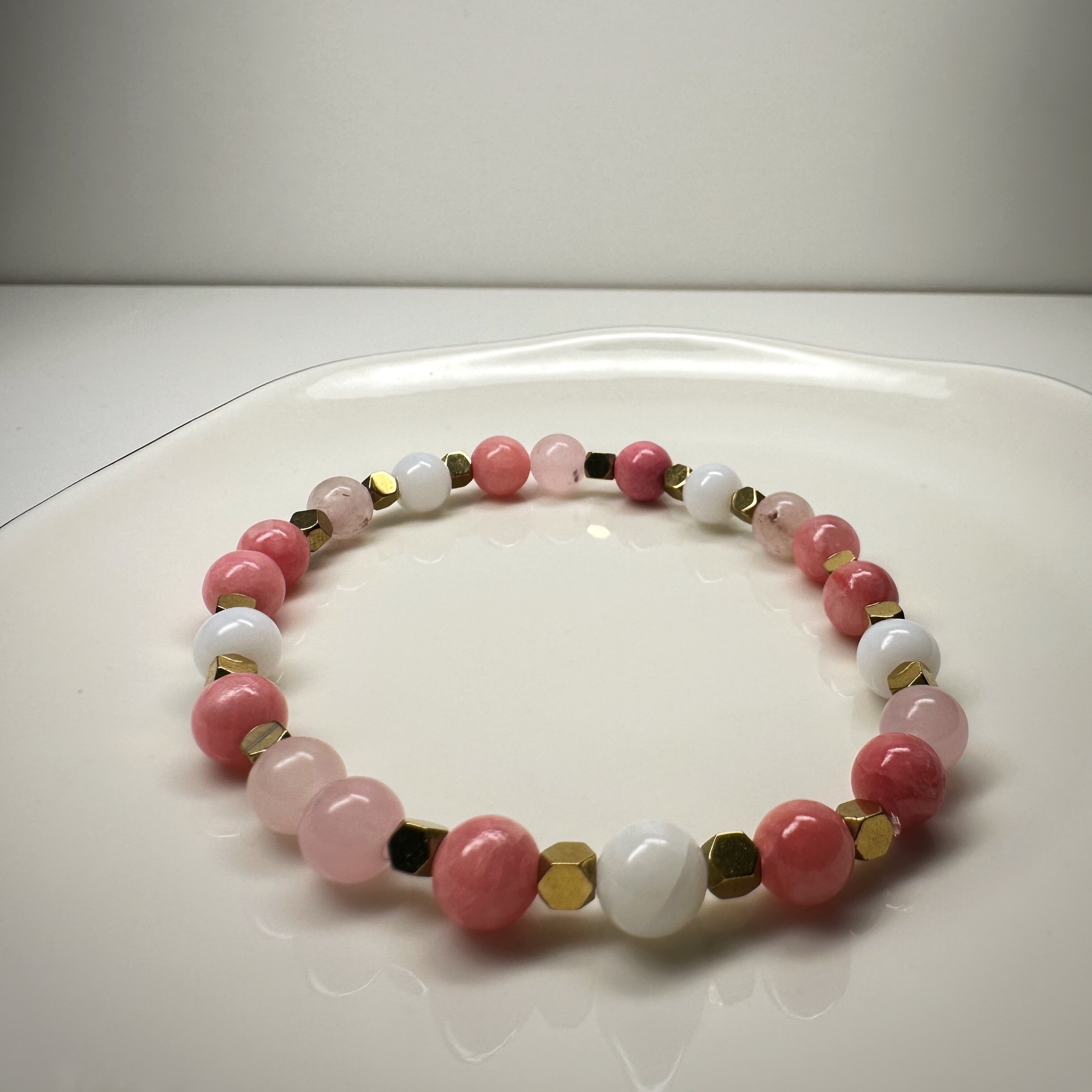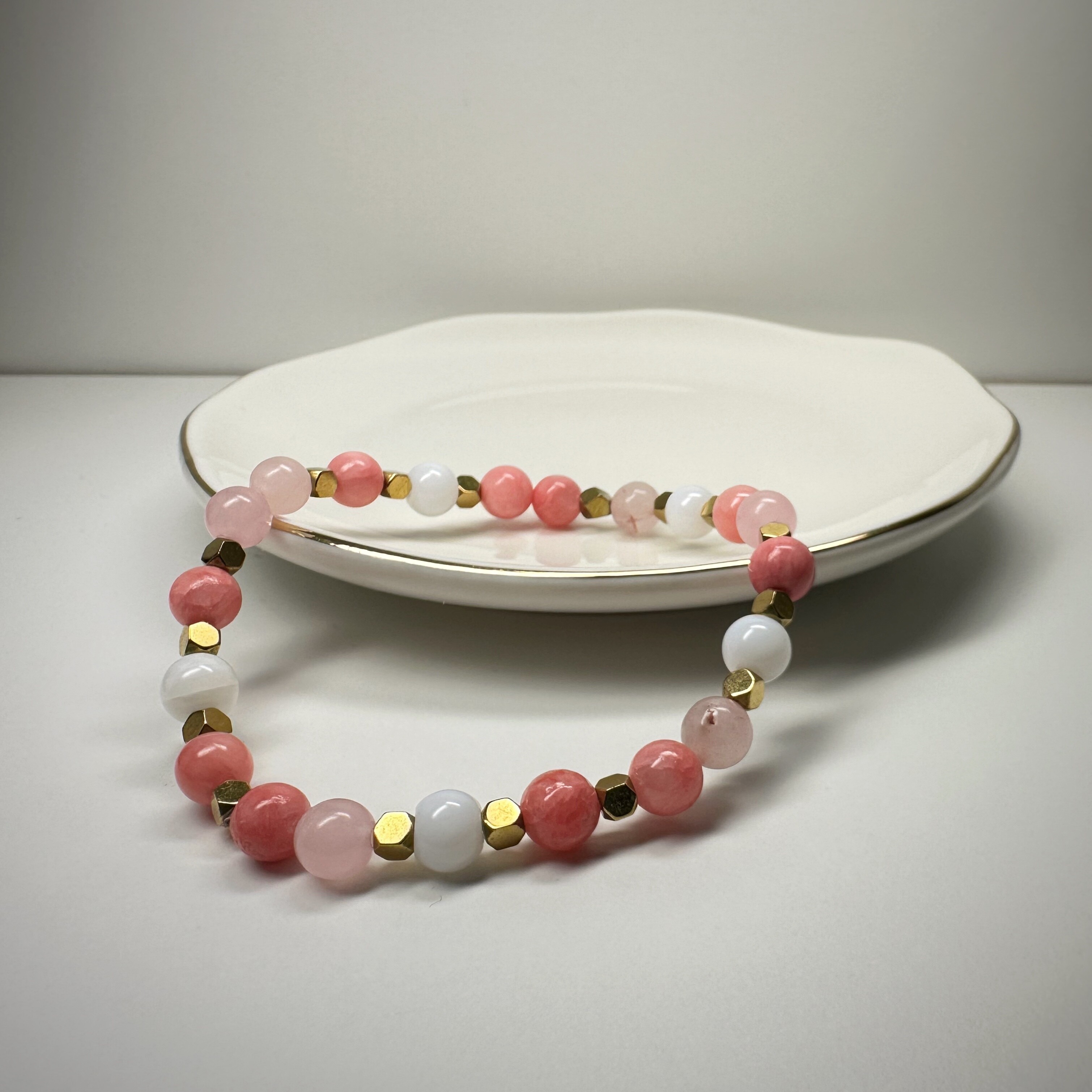 Peach Sorbet to bransoletka o smaku lata – delikatna, kobieca i pełna miękkiej energii. Jadeity w pastelowych odcieniach wspierają łagodność i wewnętrzny spokój. Subtelne złote akcenty dodają klasy, a całość emanuje harmonią.