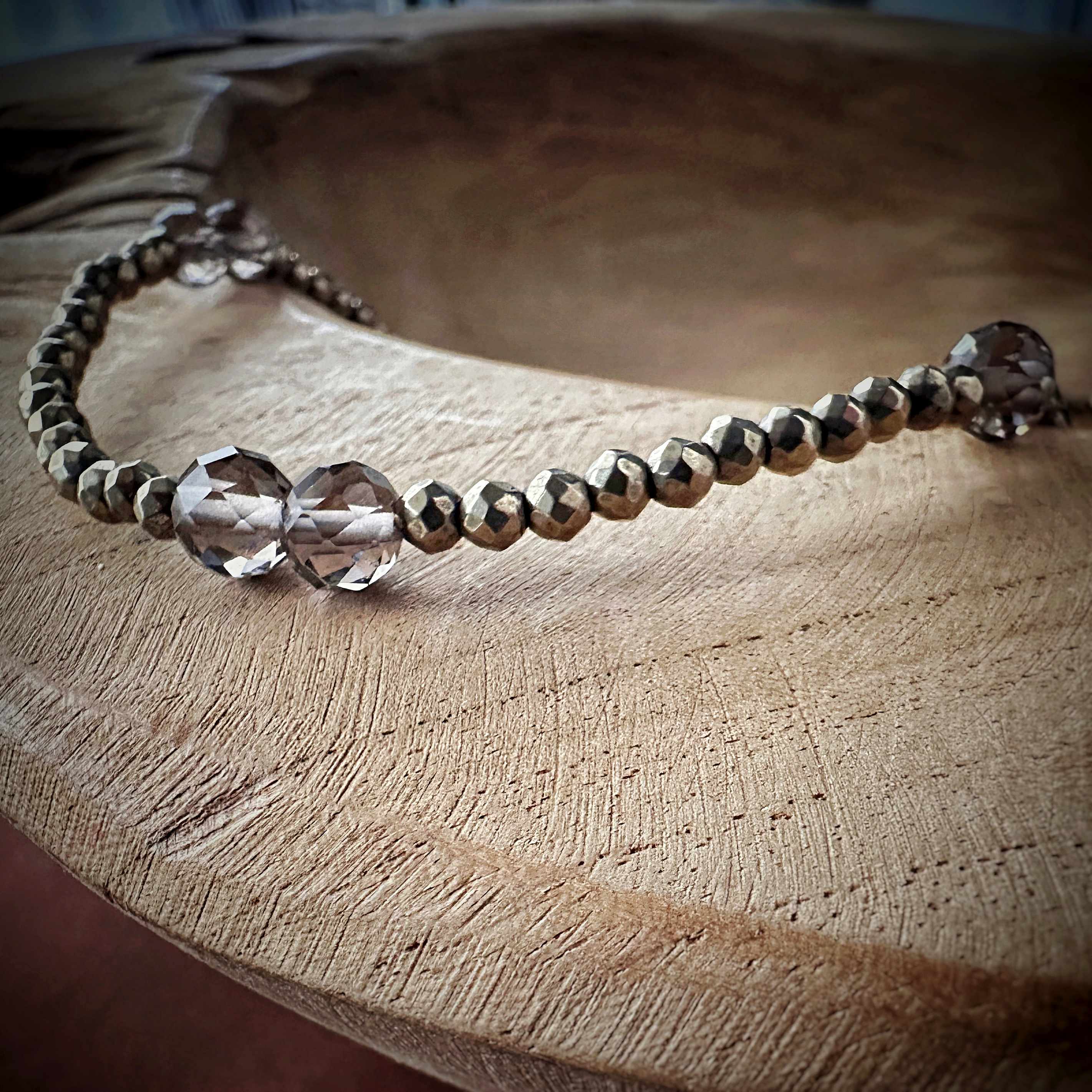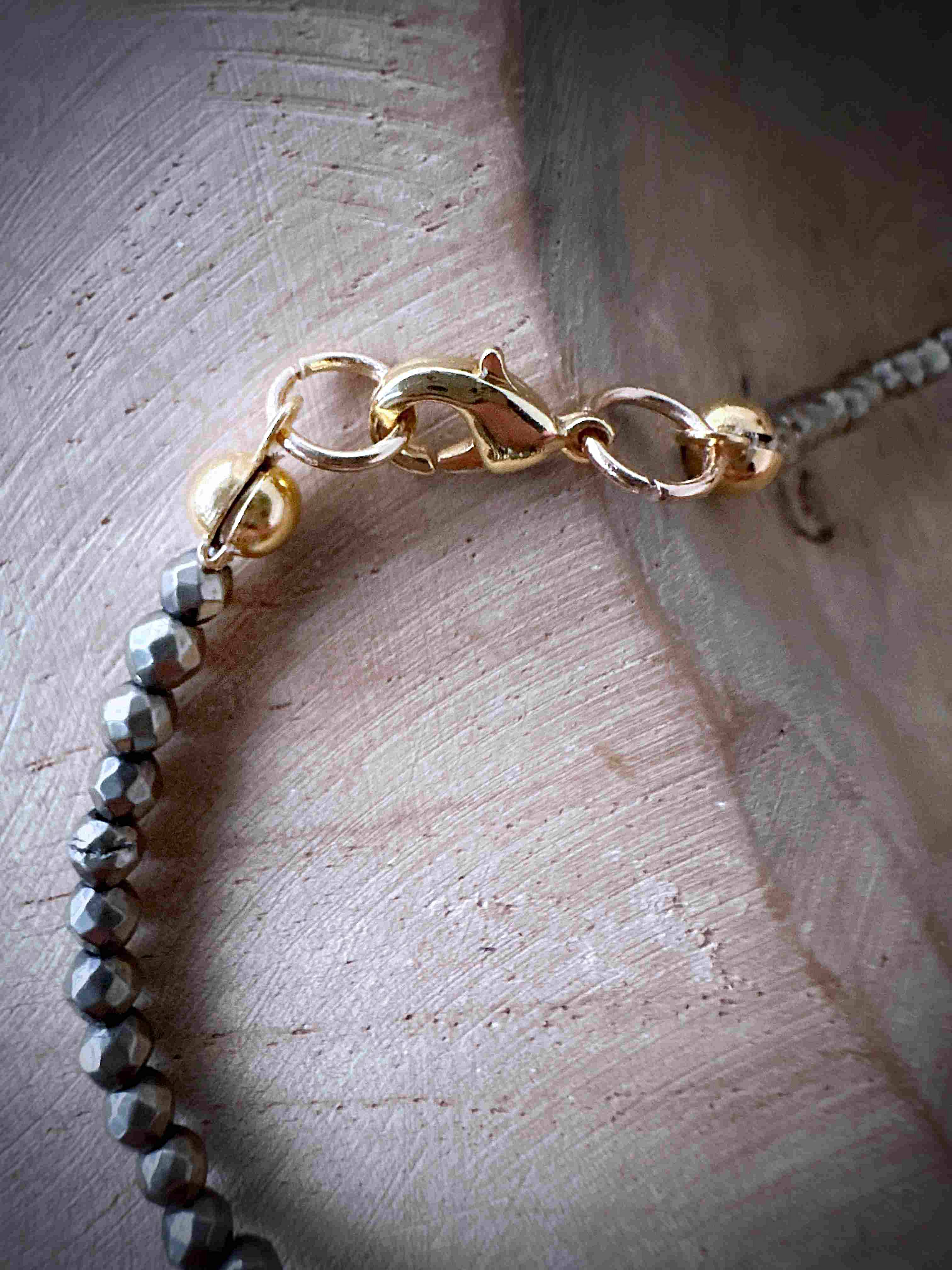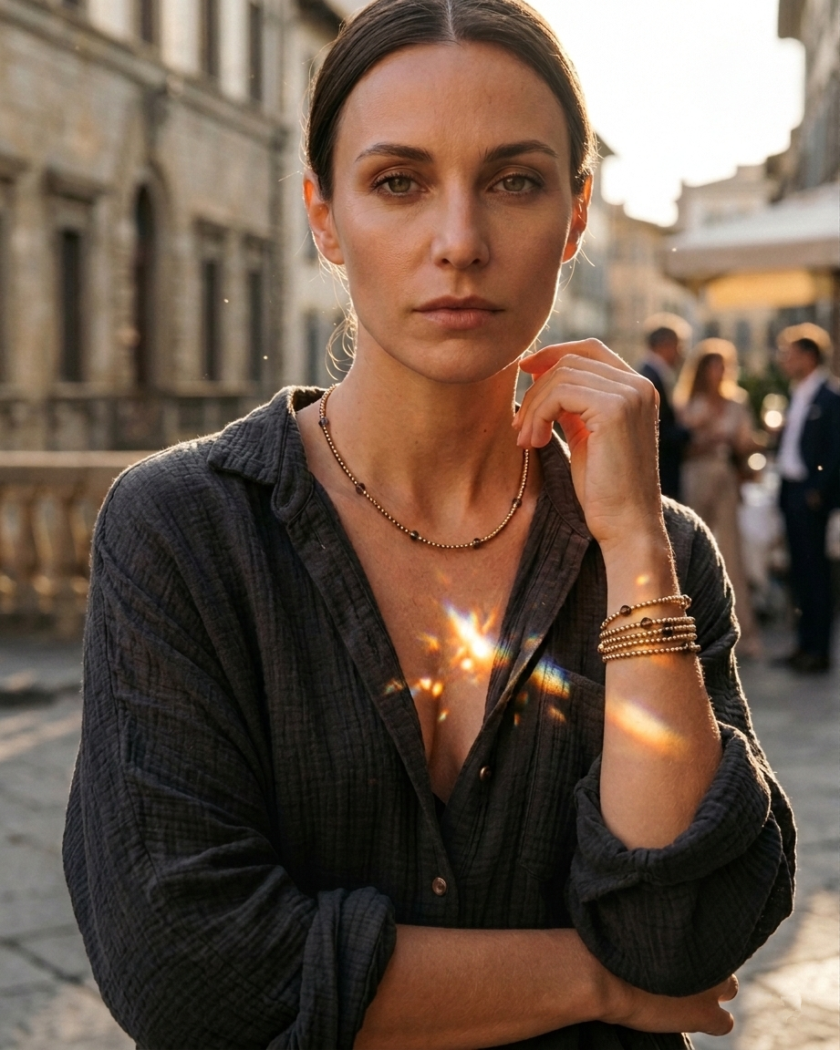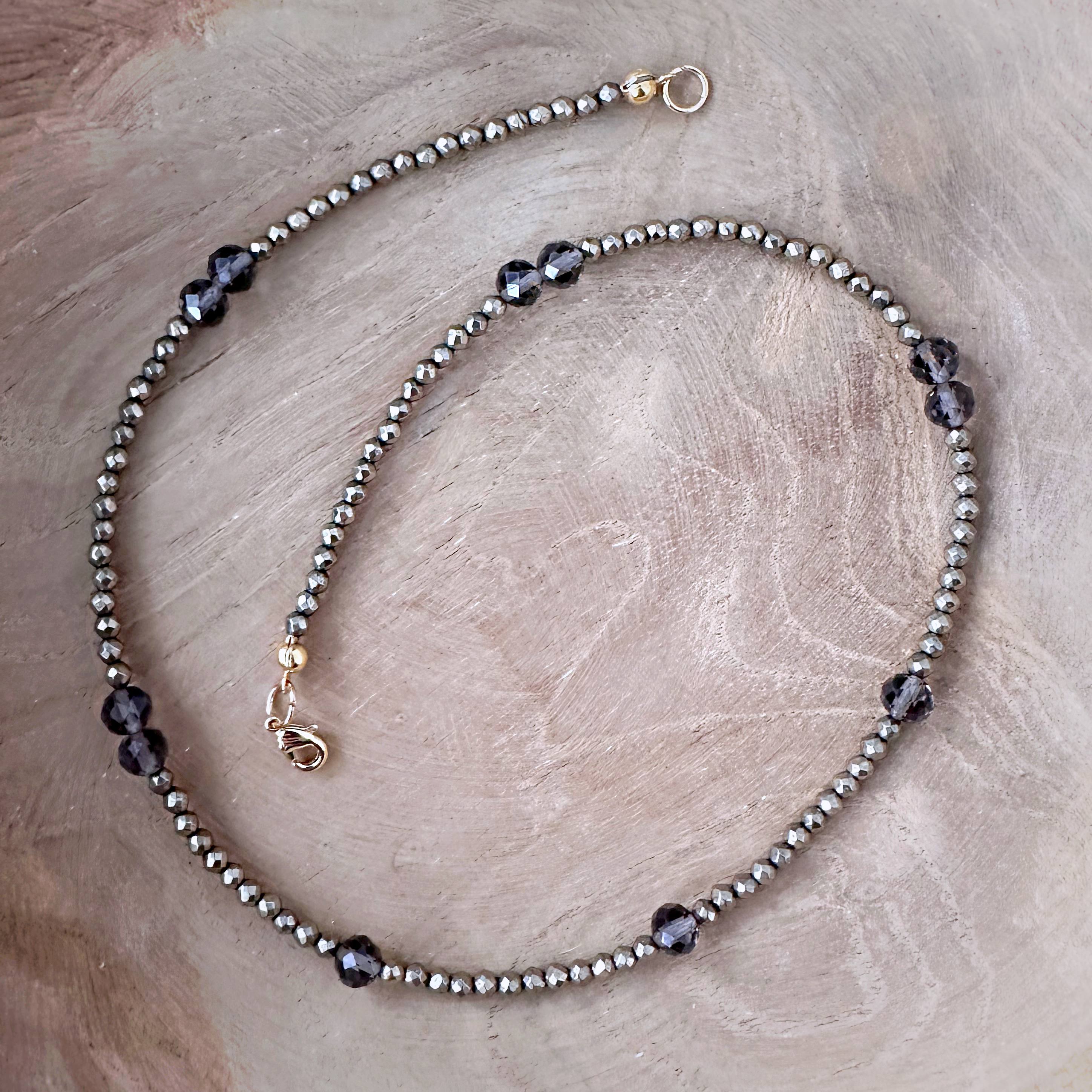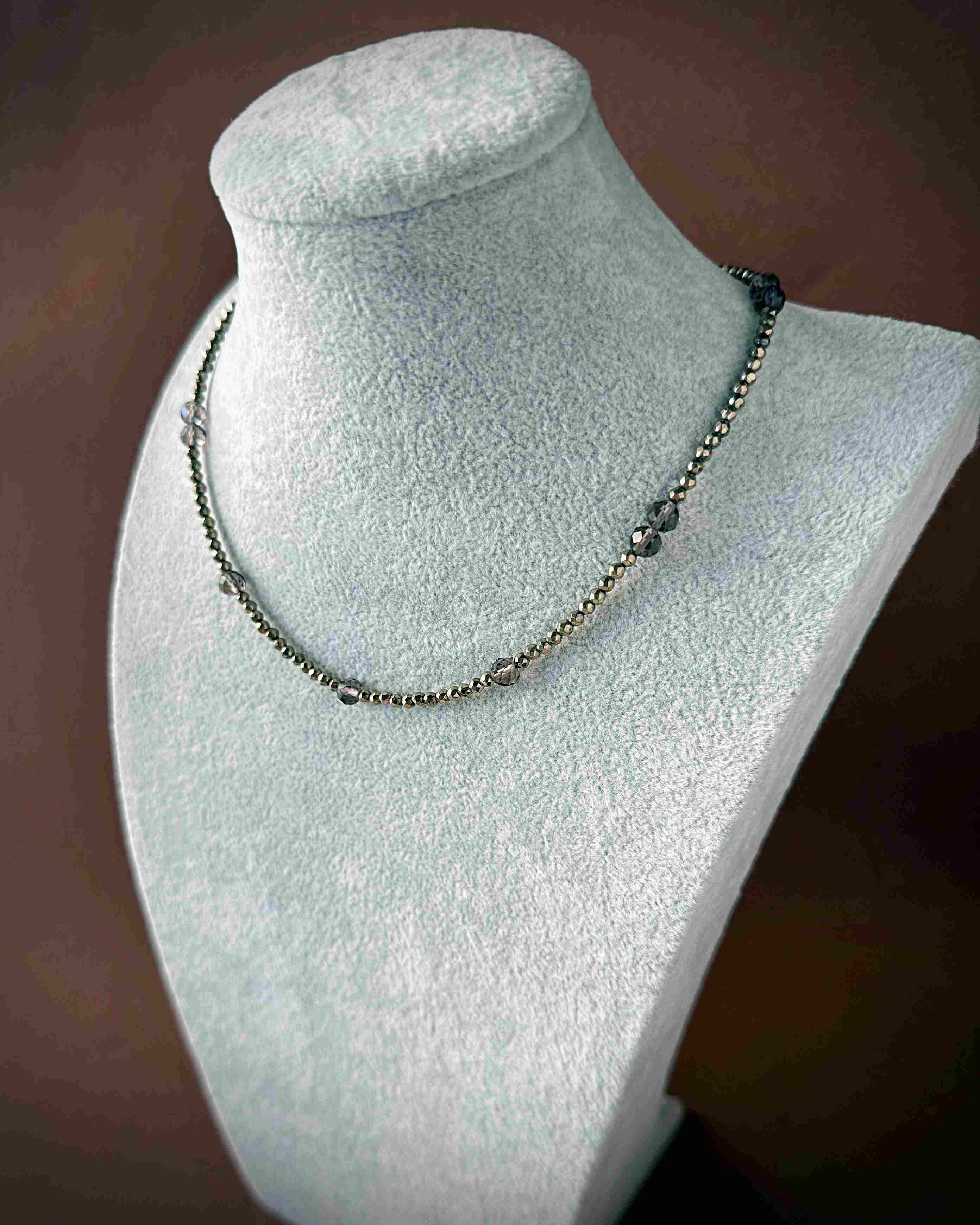 Zainspirowany mgłą o poranku i zapachem chłodnego powietrza po deszczu - Smoky Harmony, to naszyjnik, który łączy w sobie elegancję i lekkość. Fasetowane bryłki hematytu w złotym odcieniu przeplatają się z półprzezroczystym kwarcem dymnym, tworząc efekt głębi i spokoju.Każdy element mieni się inaczej, gdy pada na niego światło, jakby nosił w sobie fragment ciszy. To biżuteria, która nie wymaga okazji – pasuje do codziennych rytuałów i wieczornej uważności.Nosząc go, poczujesz, że spokój nie musi być odległy. Jest blisko – w dotyku, w geście, w każdej chwili, którą wybierasz świadomie. .Smoky Harmony, to Twój oddech między dniem a nocą - dyskretny znak, że wszystko, czego potrzebujesz, już masz w sobie.